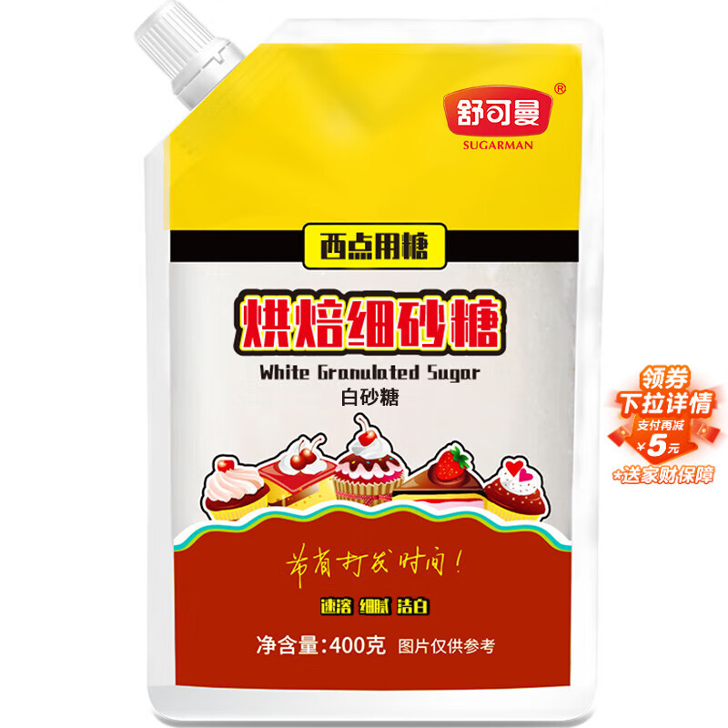 舒可曼 烘焙细砂糖400g【拧盖设计】白砂糖糖霜糖粉烘焙原料咖啡伴侣