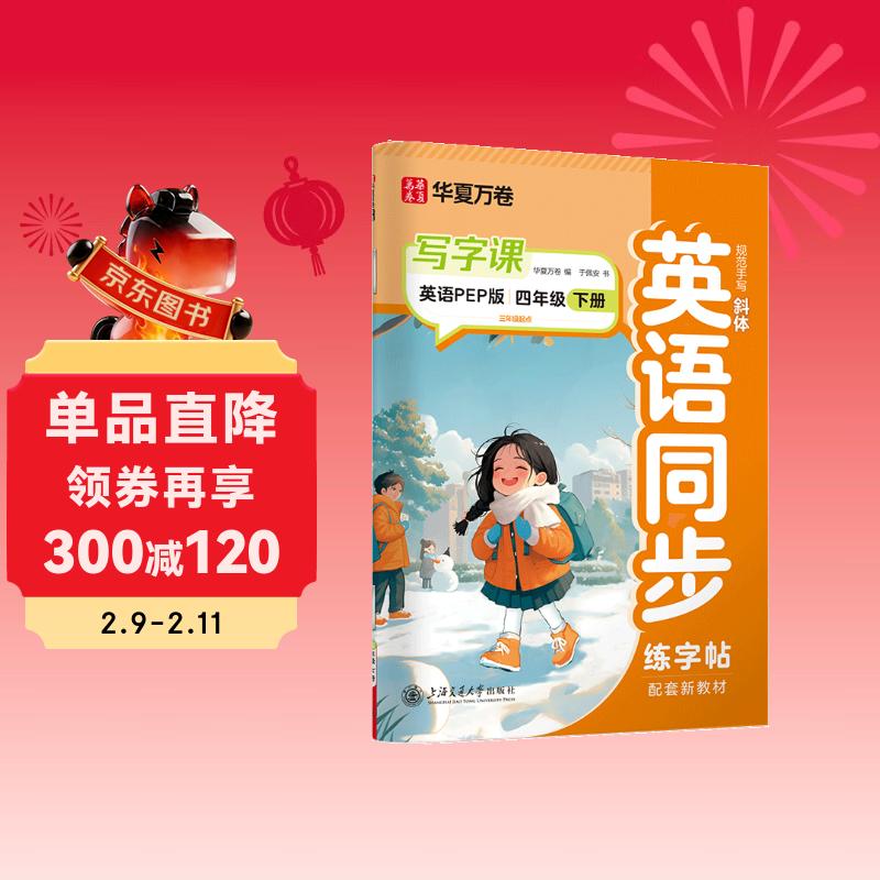 华夏万卷 四年级下册英语同步练字帖小学生同步写字课人教PEP版英文教材规范斜体英语一课一练于佩安英文手写体描红字帖