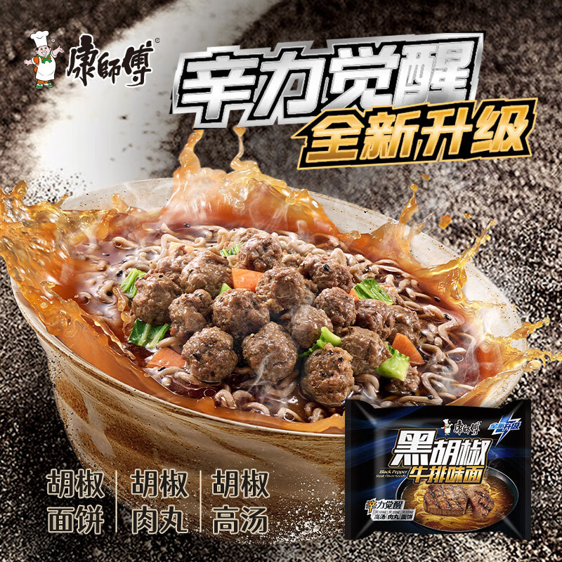康师傅方便面【JDG无畏推荐】黑白胡椒 黑胡椒牛排味袋面104g*24袋 泡面