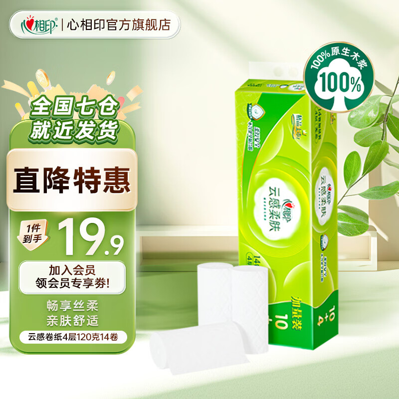 心相印卷纸云感加厚四层120克14粒立体压花无芯卫生纸厕纸手纸家庭装 4层 120g/卷*14卷