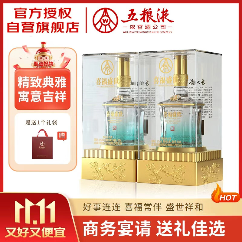 五粮液股份出品 祥和双瓶装 浓香型白酒52度 500mL*2瓶 送礼袋