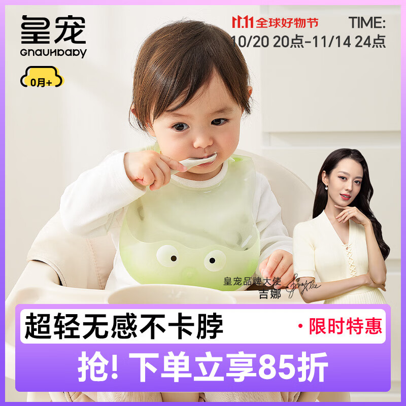 皇宠吃饭围兜婴儿辅食围嘴硅胶防水饭兜宝宝罩衣儿童非一次性围兜