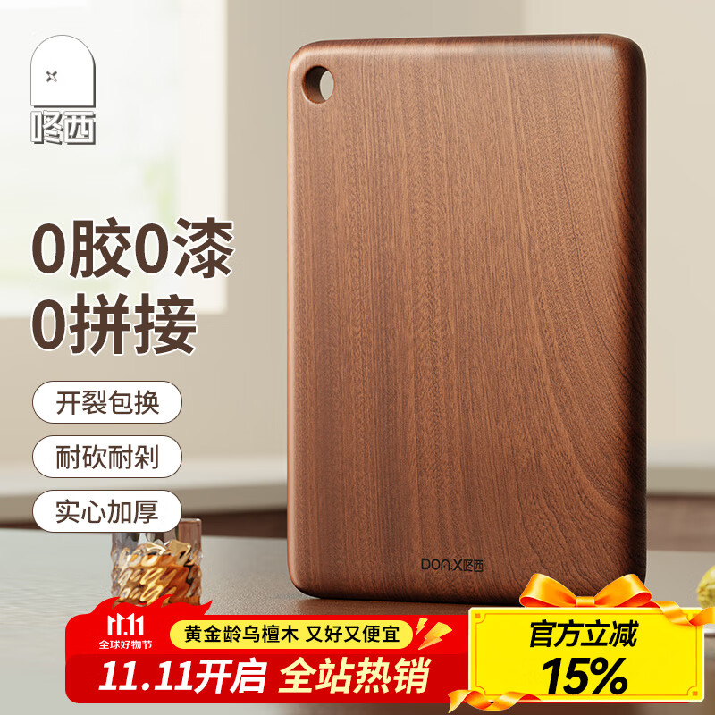 咚西乌檀木整木菜板南美进口家用抗菌防霉实木切双面案板厨房砧板大号 【乌檀木整木】40*28*2.5cm(适用4-6人)