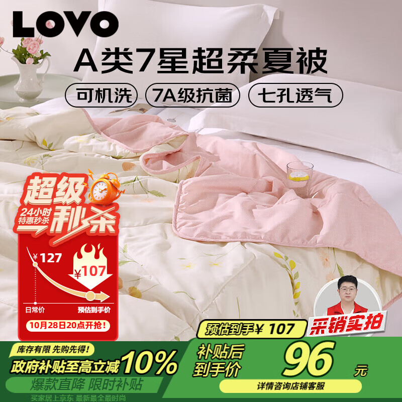 LOVO罗莱 夏被子 A类抗菌防螨夏凉被纤维被空调被 2.4斤200*230cm