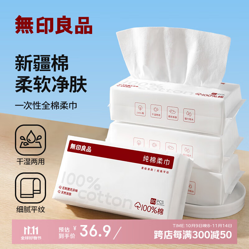 无印良品一次性洗脸巾240抽新疆棉干湿两用100%纯棉柔软毛巾便携擦脸巾3包