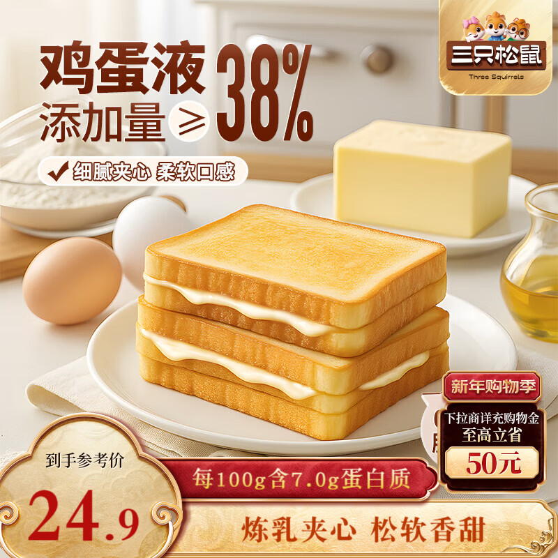 三只松鼠氧气吐司炼乳夹心早餐代餐休闲零食吐司面包办公室点心800g/箱