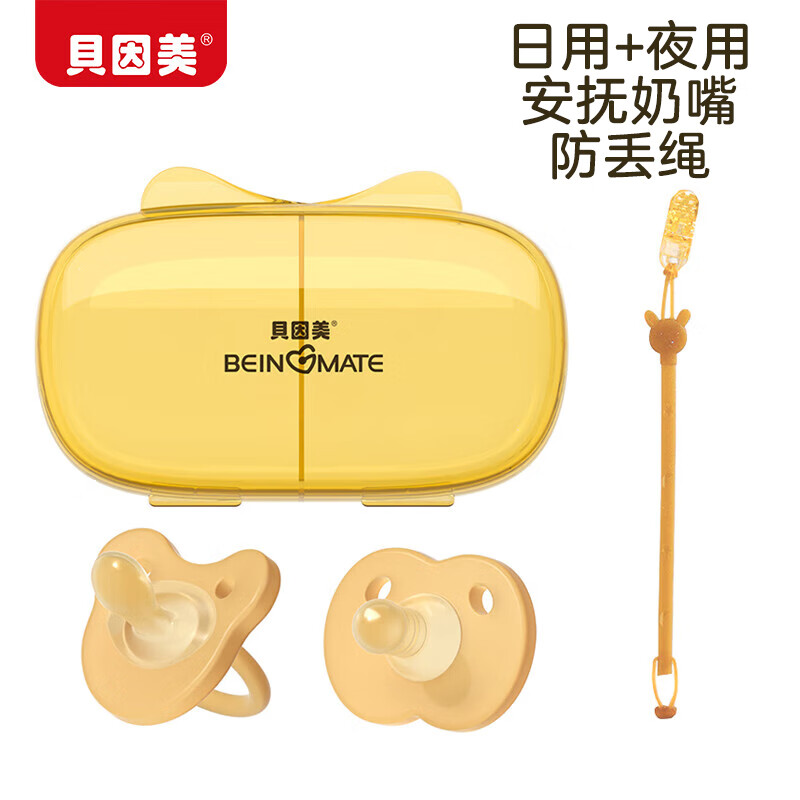 贝因美婴儿安抚奶嘴新生儿0-3-6-12个月宝宝防胀气一体硅胶2只装+防丢绳