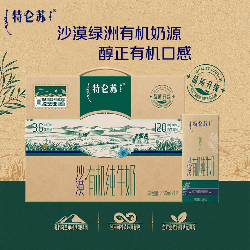 蒙牛特仑苏有机纯牛奶250ml*12盒整箱 沙漠有机奶源部分地区七月底产