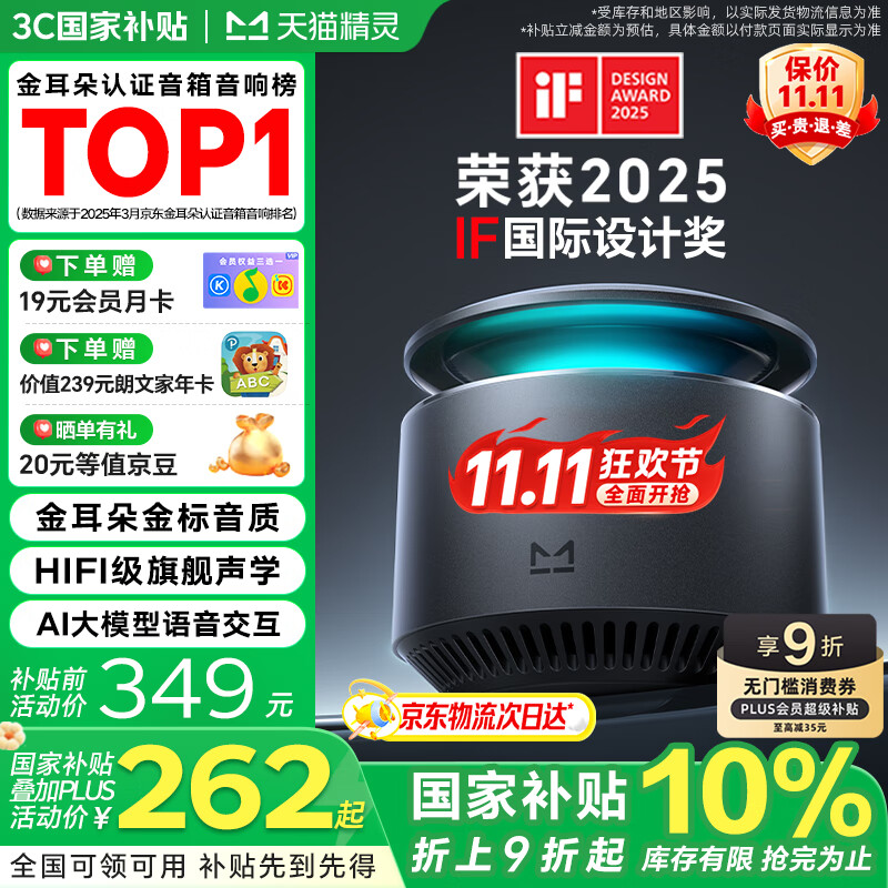 天猫精灵【国家补贴】智能音箱X6蓝牙音响AI大模型问答HIFI音质低音炮语音唤醒故事闹钟控制家电 生日礼物 旗舰音质-时空飞梭【深灰色】 官方标配