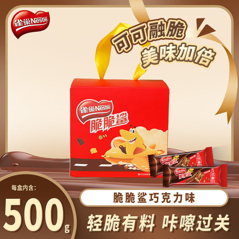雀巢(Nestle)脆脆鲨威化饼干500g巧克力味手提盒装休闲零食代餐 办公室零食