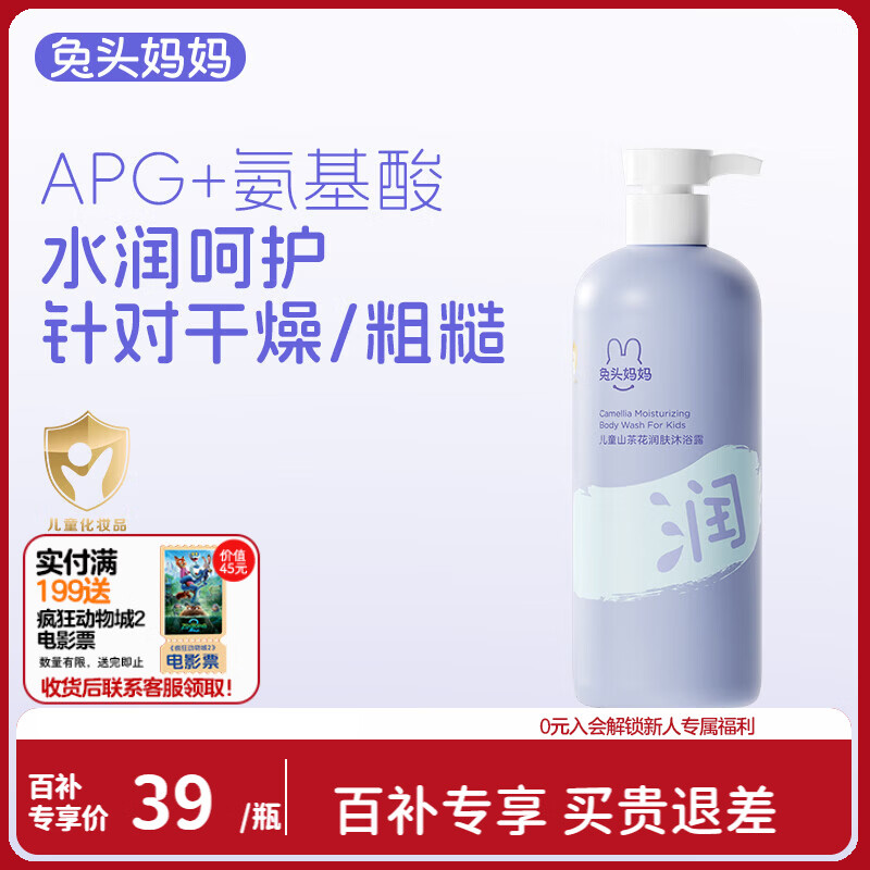 兔头妈妈山茶花润肤儿童沐浴露水润舒爽婴儿沐浴露335ml