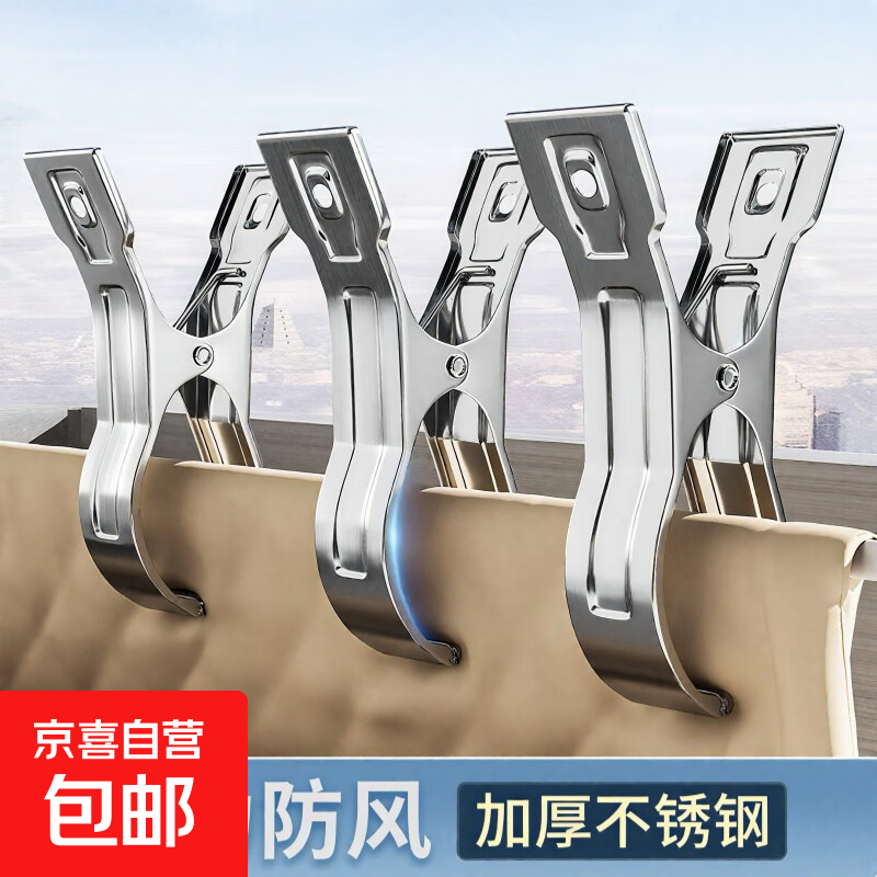 不锈钢防风夹强力防风夹子晾衣夹固定器衣服防风固定扣晒被子 不锈钢大被夹 6个 大号闭口