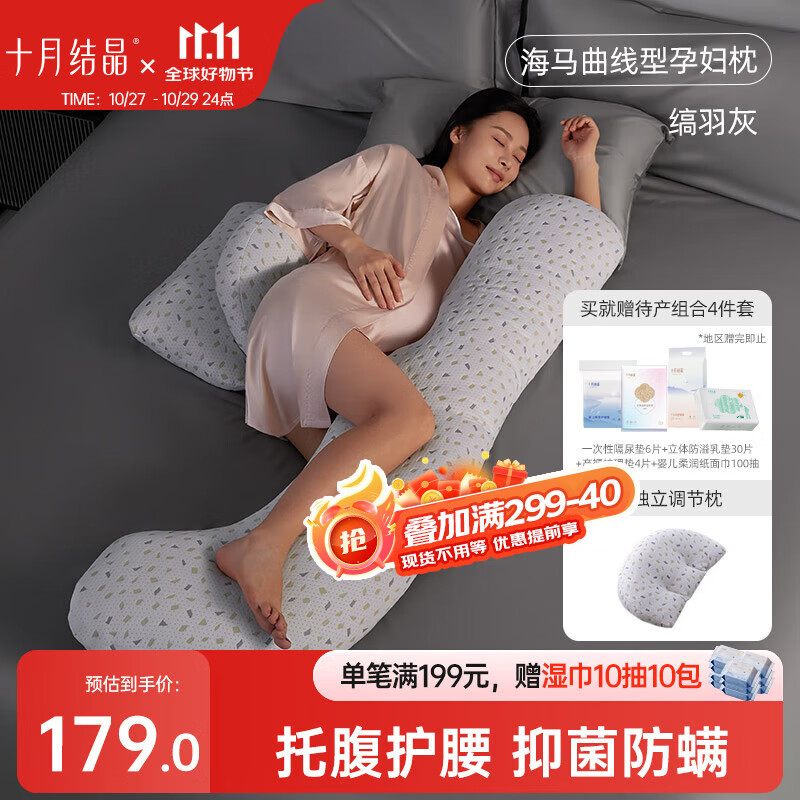 十月结晶孕妇枕头护腰侧睡枕托腹枕海马曲线型枕侧卧枕腰枕睡觉垫靠枕