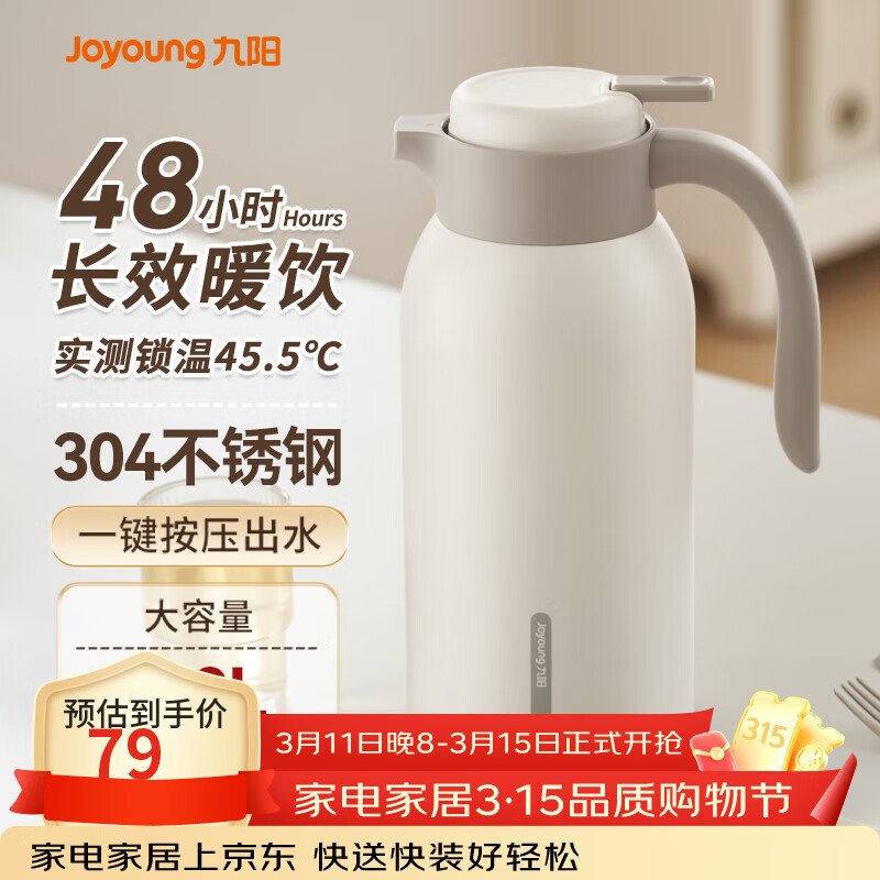 九阳(Joyoung)保温壶家用304不锈钢内胆保温水壶家居暖水瓶户外大容量2LWF201白