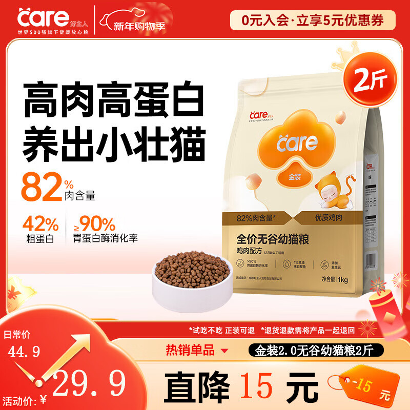 好主人金装好主人猫粮2.0 成猫幼猫蓝猫英短通用全价无谷冻干 【专研配方 呵护奶猫】幼猫粮2斤