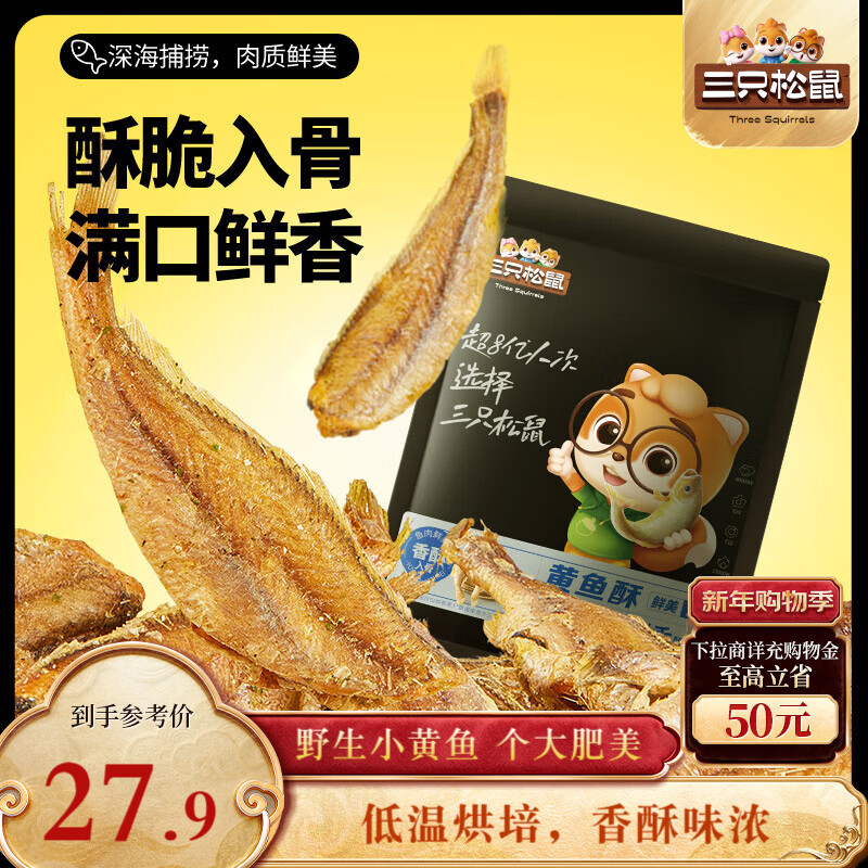 三只松鼠原味黄鱼酥250g 吮指香酥小黄鱼海味休闲追剧零食小吃