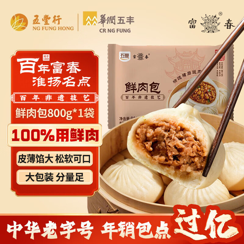 富春鲜肉包800g 10只早餐大肉包速食 扬州包子速冻蒸包半成品加热即食