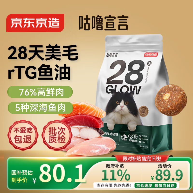 京东京造咕噜宣言全价鱼油鲜肉猫粮2kg美毛防掉毛通用型全阶段长毛猫鱼肉