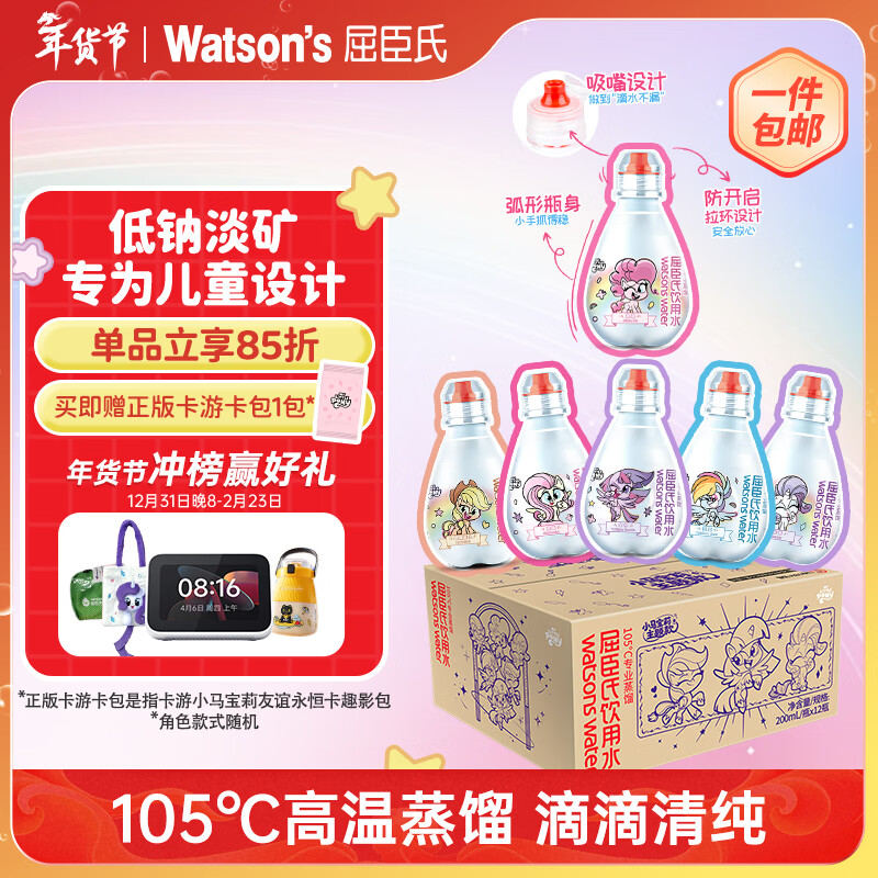 屈臣氏儿童水小马宝莉款蒸馏水纯净水200mL*12瓶整箱小瓶水 含盲卡 包邮