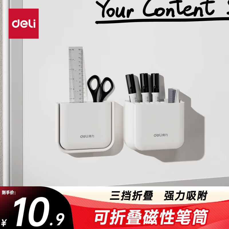 得力可折叠磁性白色笔筒 白板笔收纳盒黑板壁挂磁铁笔盒磁吸粉笔挂墙黑板擦墙贴悬挂式白板100*23*84mm