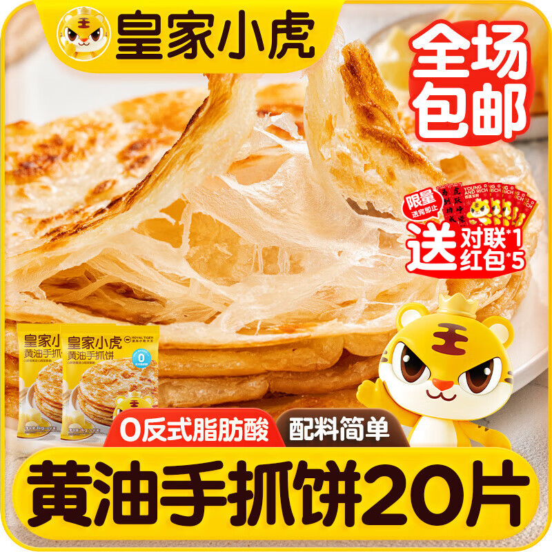 皇家小虎黄油手抓饼20片2kg宝宝早餐半成品煎饼0反式脂肪酸起酥油源头直发