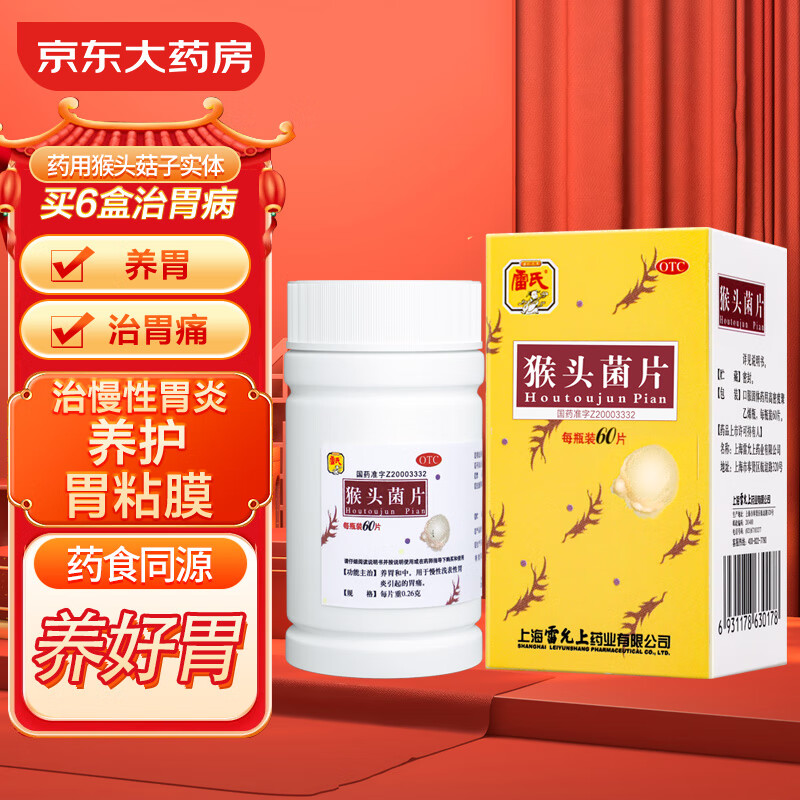 雷氏 猴头菌片0.26g*60片 养胃和中胃炎慢性胃炎用于慢性浅表性胃炎引起的胃痛