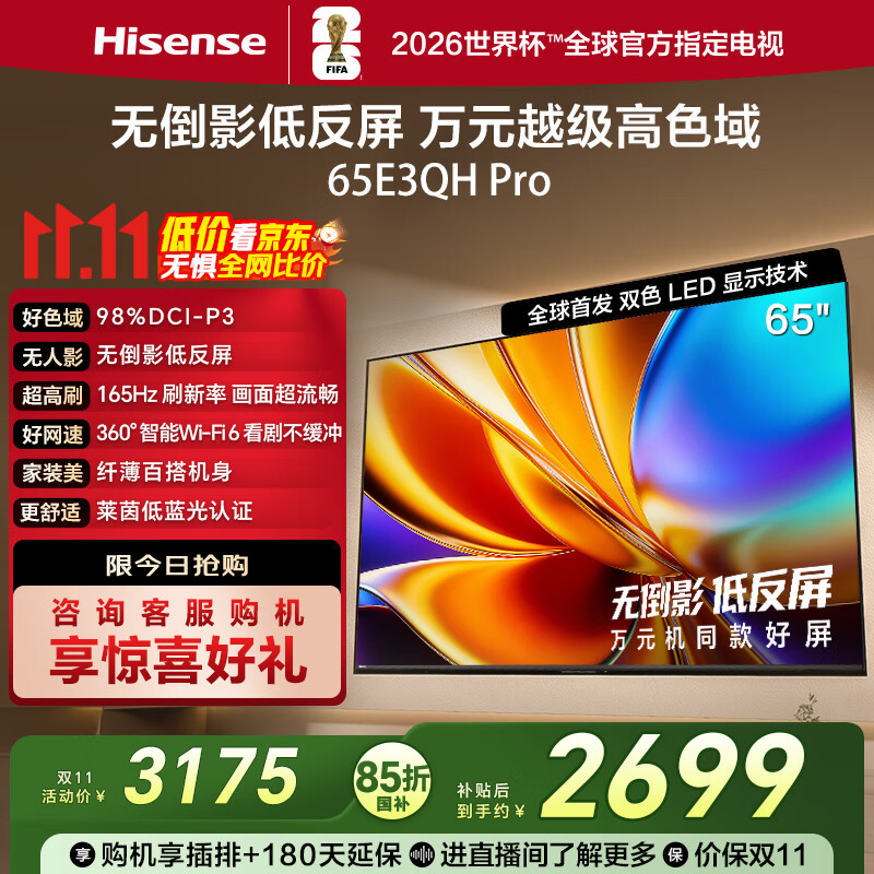 海信电视E3QH Pro 65英寸 万元级高色域 抗反光无倒影 165Hz高刷 智能Wi-Fi6 国家补贴电视 65英寸