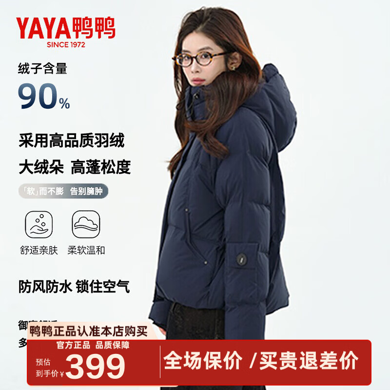 鸭鸭羽绒服女士短款2025年冬季新款时尚百搭连帽鸭绒保暖面包服外套ZX 藏青色 S