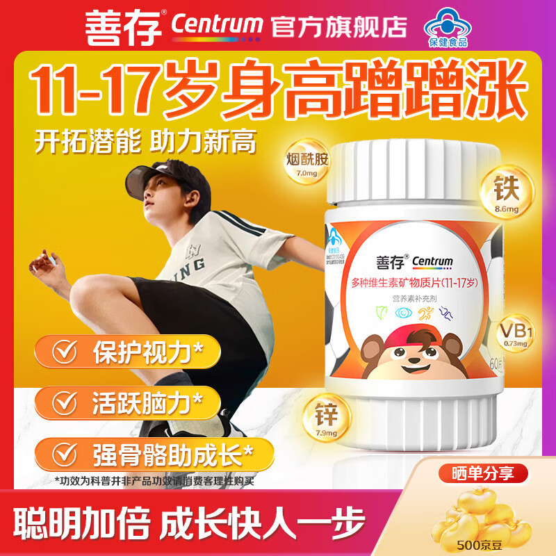 善存(Centrum) 青少年儿童多种复合维生素矿物质片千林VBVCVD保健品 【2个月量】青少年多维元素矿物质片 60片*1瓶 11-17岁青少年