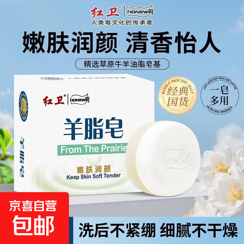 经典国货红卫羊脂皂洗头洗脸洗澡香皂温和洁肤嫩肤清洁控油 红卫羊脂皂120g*3盒