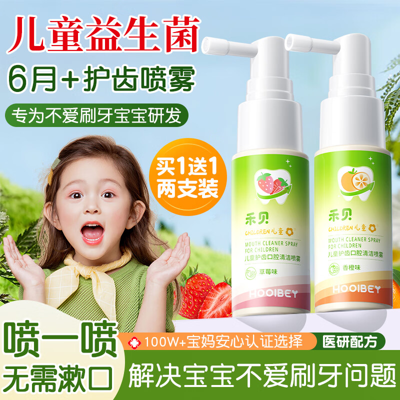 禾贝(HOOLBEY)婴幼儿口腔抑菌喷雾护牙防蛀含氟清新口气草莓味不辣口20ml