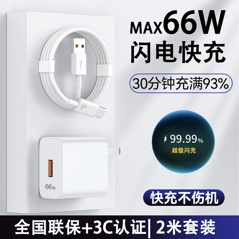 今典120W/100W/66W充电器套装快充数据线Type-c充电线超级闪充安卓插头适用荣耀VIVO小米OPPO手机 MAX66W电器+2米6A线