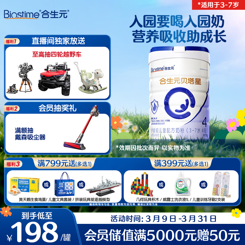 合生元(BIOSTIME)贝塔星 学龄前儿童奶粉 4段(3岁或以上) 消化吸收DHA 800克