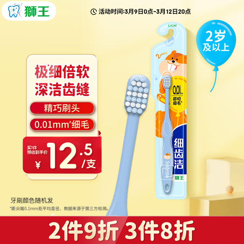 狮王(Lion)细齿洁超细毛软毛儿童牙刷宝宝婴儿牙刷2岁以上单支新老包装随机