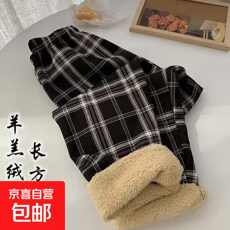 冬季休闲睡裤女秋天加绒长裤暖暖裤宽松保暖加厚家居裤 冬季格子黑色裤 均码 适合80130斤