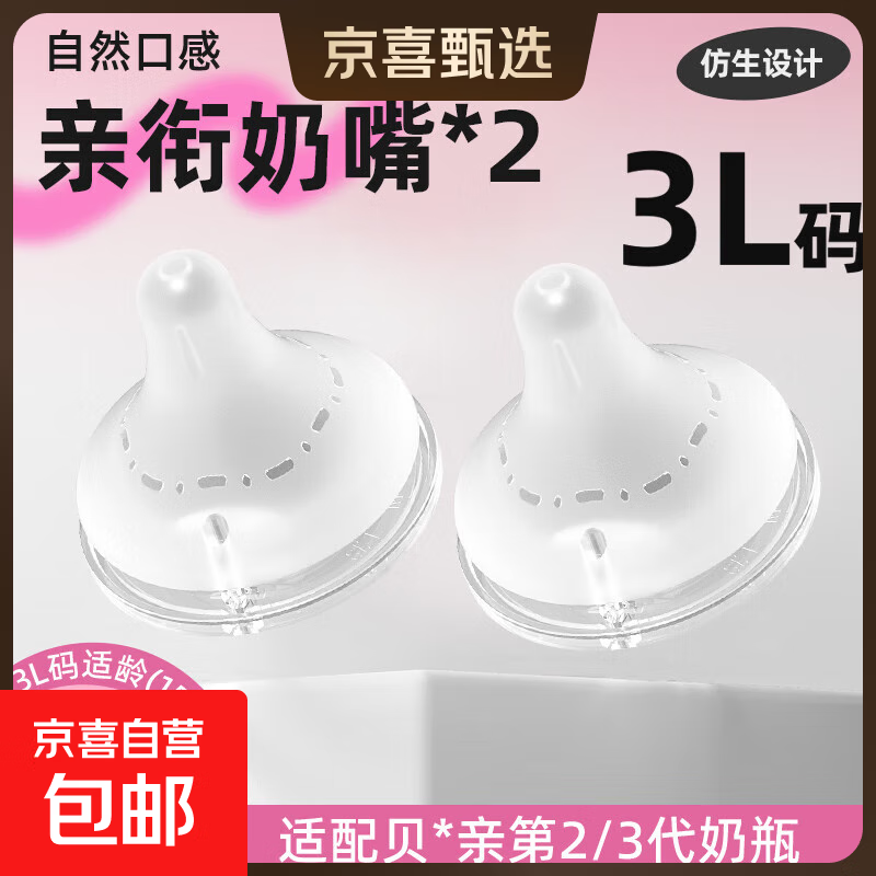适配贝亲二代宽口径奶瓶配件 新生婴儿宝宝第三代硅胶奶嘴通用 LLL号 15月以上 2只装