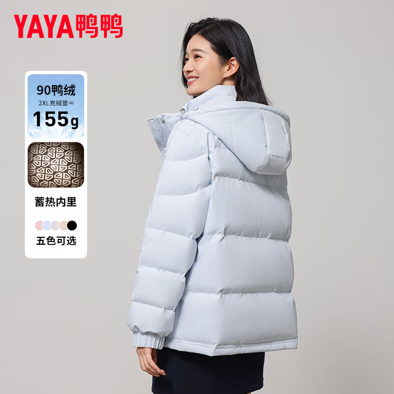鸭鸭(YAYA)羽绒服女士2025冬季新品短款加厚休闲连帽百搭蓄热鸭绒外套 冰川蓝 M (建议110-125斤)