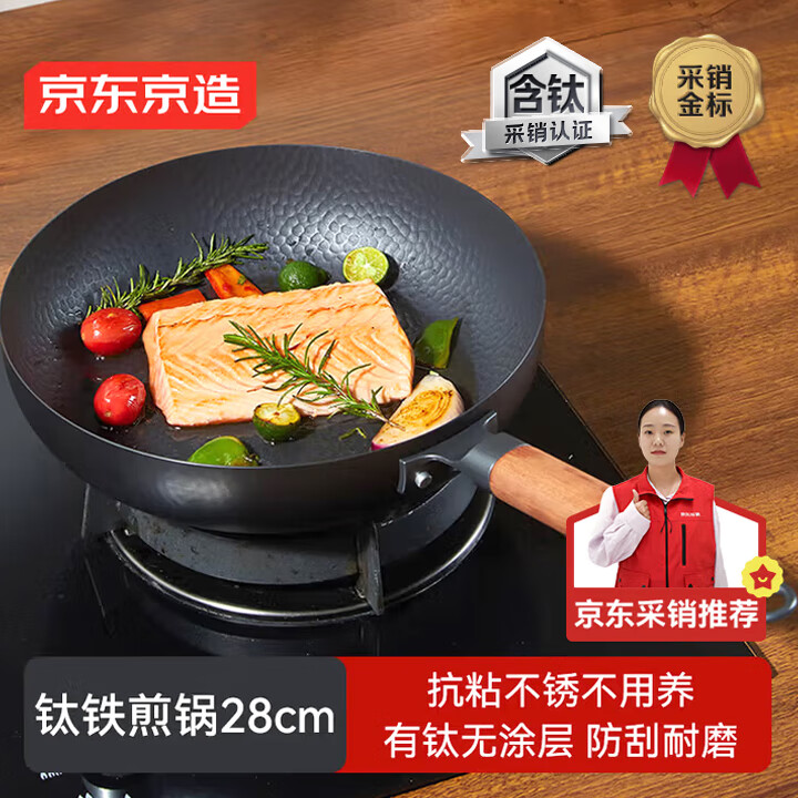 京东京造平底锅 钛铁锤纹煎锅无涂层抗粘煎蛋牛排电磁炉燃气灶通用 28cm