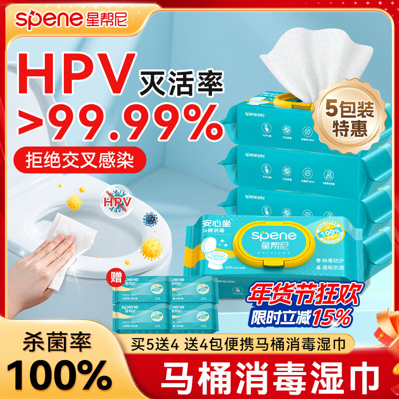星帮尼hpv马桶消毒湿巾医研级卫生间0酒精杀菌清洁厕所擦坐垫圈湿纸巾