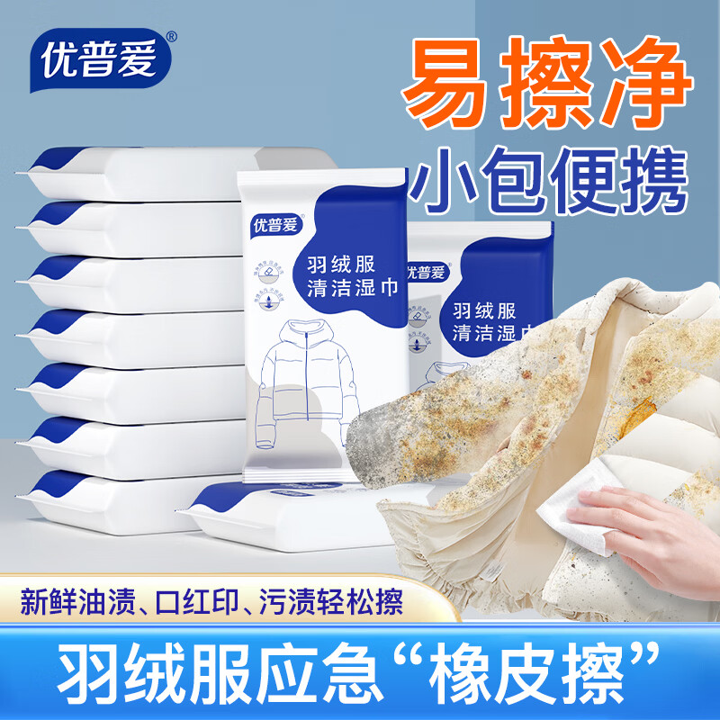 优普爱羽绒服湿巾12抽*10包应急去污不留痕便携式免水洗干洗剂