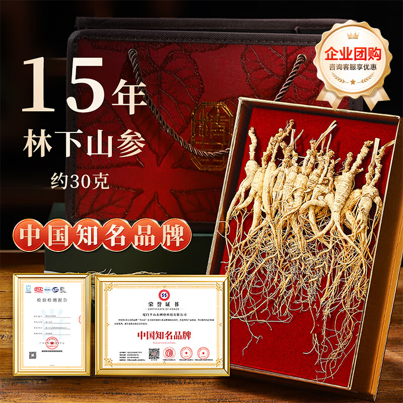 半山农 长白山人参 林下山参30克 约15年林下籽参 野外山参补品年货礼盒