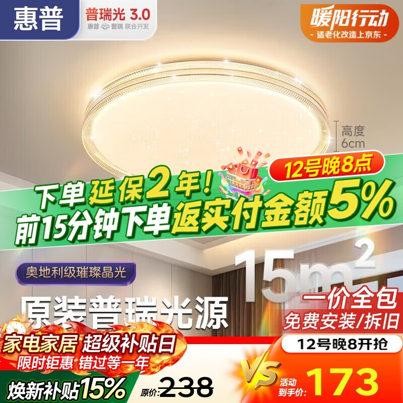 惠普吸顶灯普瑞护眼LED餐厅卧室轻奢风水晶灯中山灯具 臻之光包安装