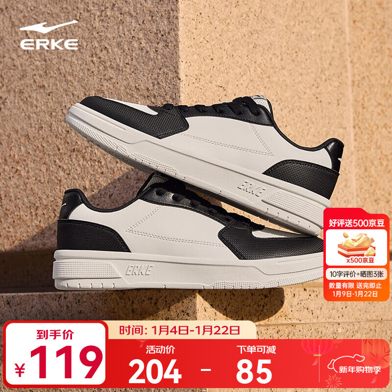 鸿星尔克板鞋男秋冬季新款滑板鞋经典天和复古休闲鞋男轻便运动鞋子男 微晶白/正黑 42