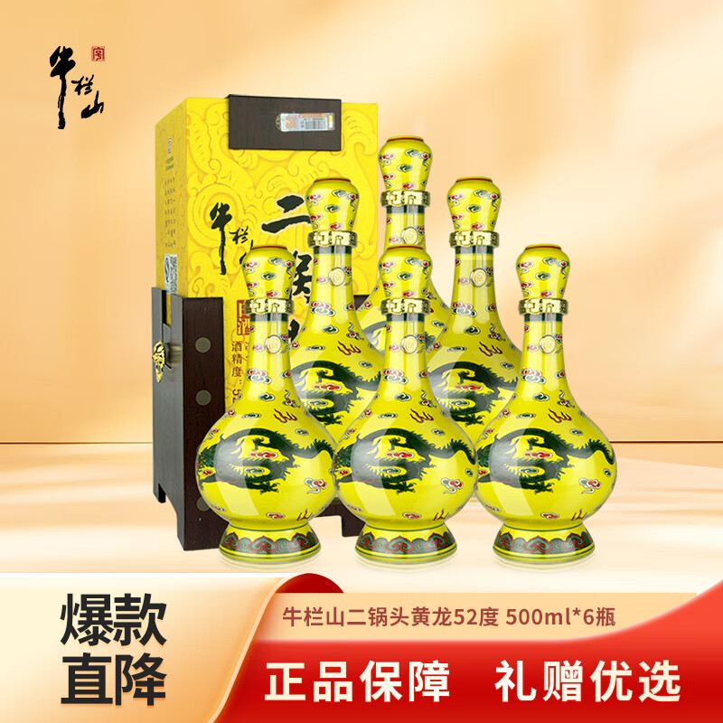 牛栏山 经典黄龙 二锅头 清香型白酒 52度 500mL*6瓶 整箱 年货节送礼
