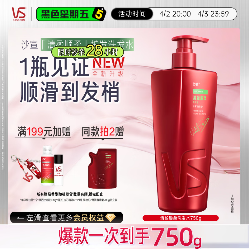 沙宣大红瓶清盈顺柔洗发水750g男女士洗头膏洗发露蓬松柔顺改善毛躁