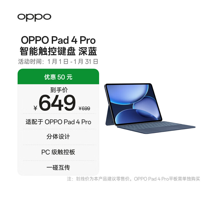 OPPO Pad 4 Pro 智能触控键盘 适配于OPPO Pad 4 Pro平板 平板智能键盘 深蓝
