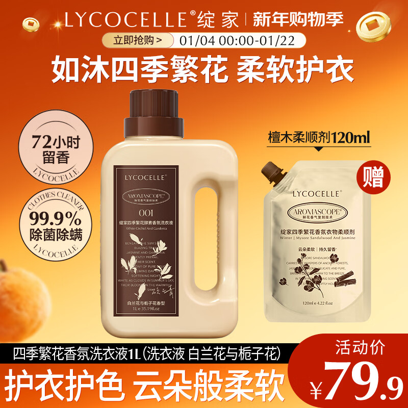 绽家四季繁花香氛洗衣液白兰花与栀子花1L持久留香护衣护色柔软洗涤剂