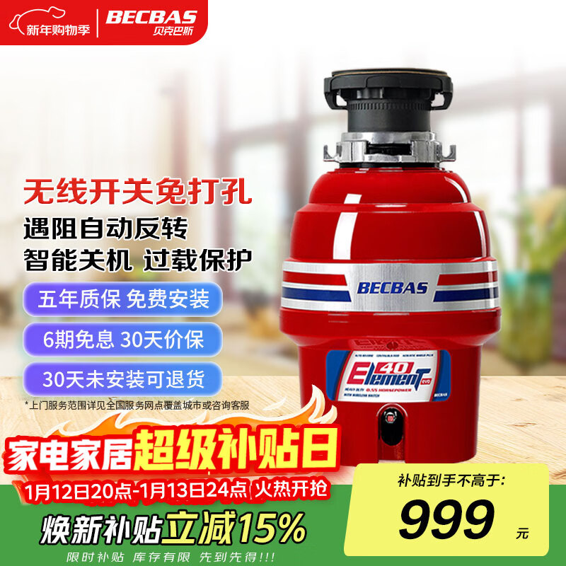 贝克巴斯(BECBAS)智能垃圾处理器厨房厨余粉碎机E40evo以旧换新
