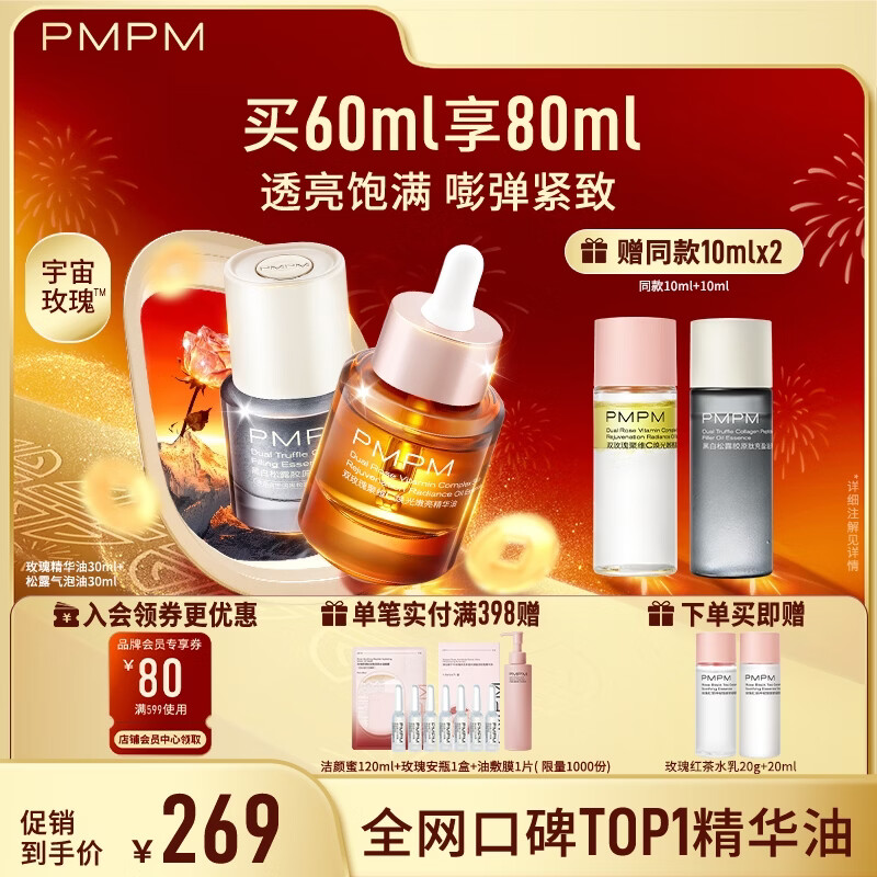 PMPM玫瑰精华油3.0+松露气泡油搭子60ml 护肤品提亮新年礼物