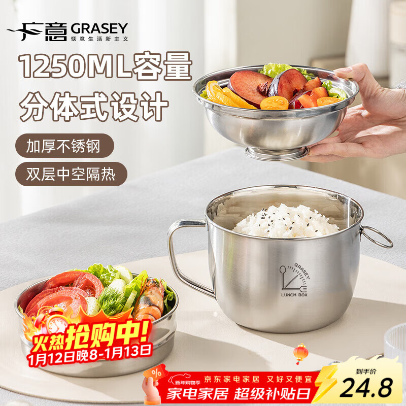 广意不锈钢饭盒 快餐杯 学生饭盒 泡面碗 不锈钢碗 饭缸 便当盒GY1535